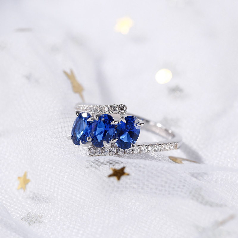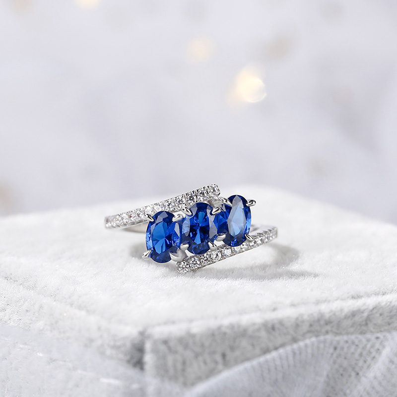 Jeulia Anel de ramo lapidado oval em prata de lei barato