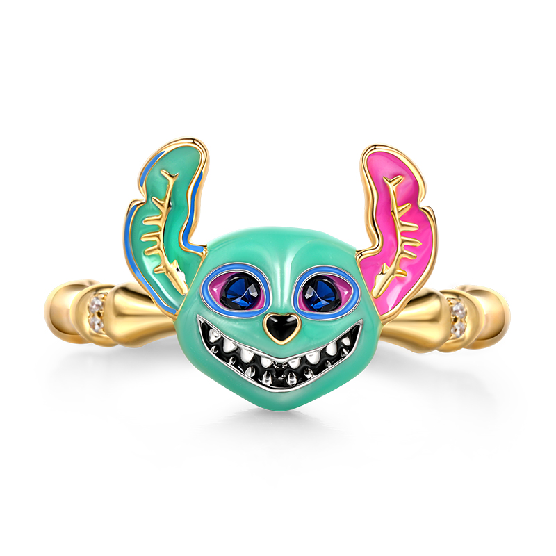 Jeulia Anel em prata de lei com esmalte colorido em forma de cachorro