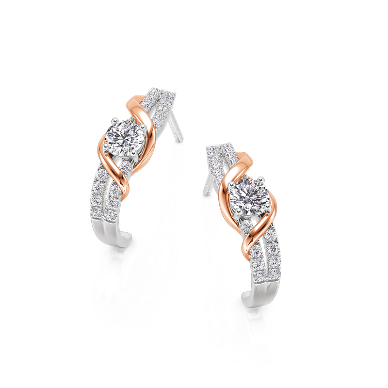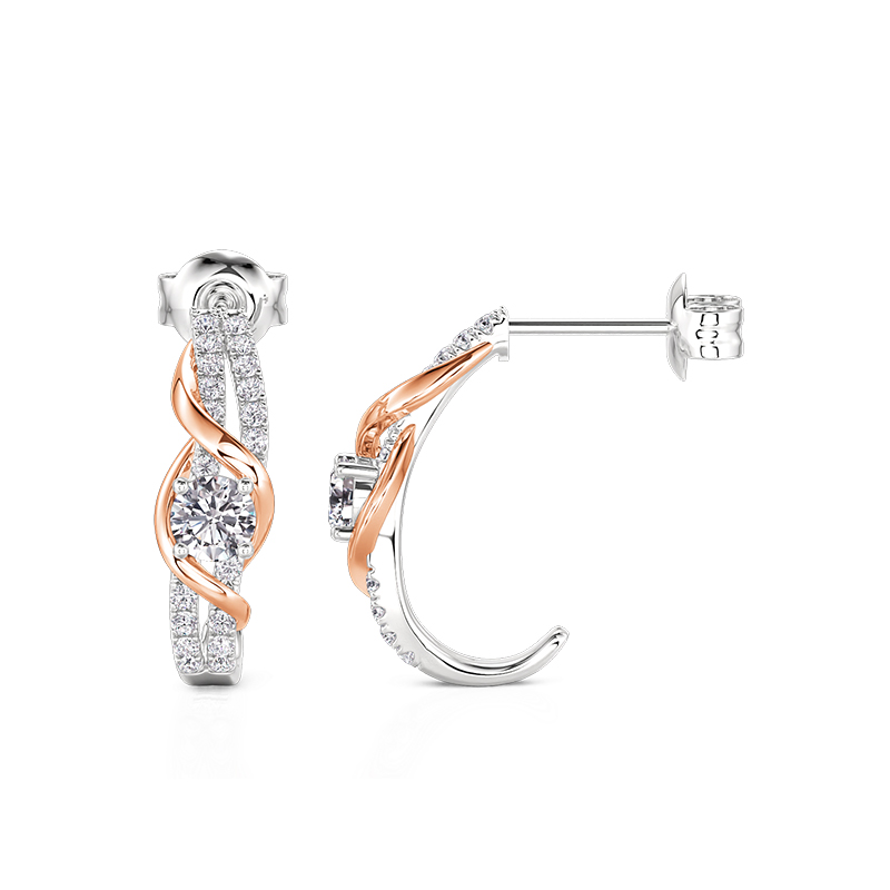 Brincos aro clássicos Amore com torção em dois tons da Jeulia, feitos de fios trançados de ouro rosa e prata que se enrolam em espiral como videiras em direção a um ápice oculto, suas curvas polidas para capturar a luz em piscadas fugazes. Esses brincos se recusam a ficar parados — vire a cabeça e suas duas tonalidades mudam do rubor do amanhecer para o aço do crepúsculo, enquanto o design leve garante que eles balançam sem um som. A torção do Amore não é apenas uma decoração; é um paradoxo forjado no metal: ousado o suficiente para enquadrar o rosto, sutil o suficiente para imitar a maneira como o vento esculpe dunas — implacável, ainda assim invisível.