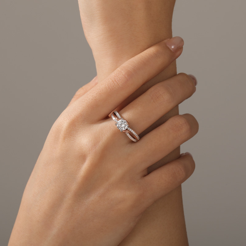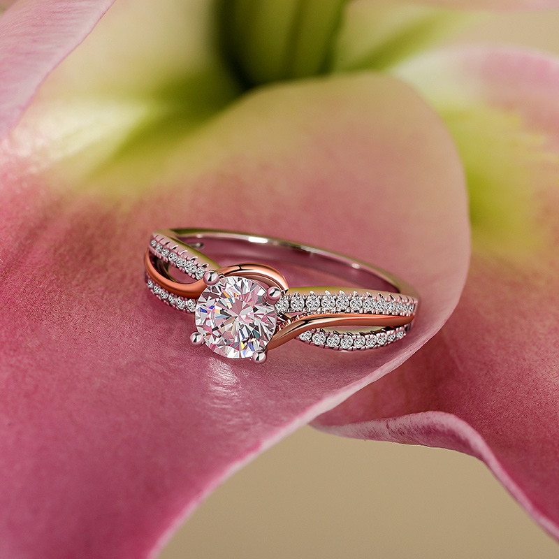 Jeulia Amore Anel de Noivado Redondo Bypass Torcido Bicolor