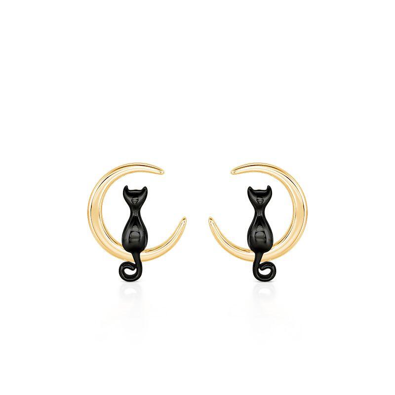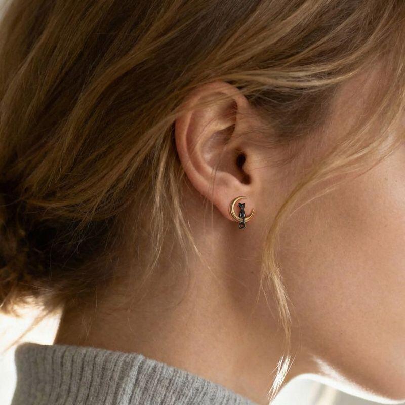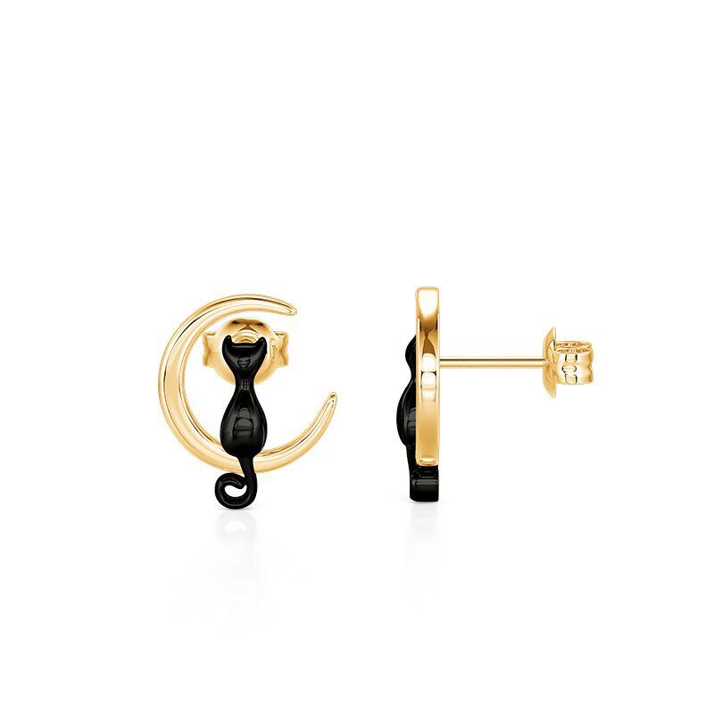 Celebre o encanto fantástico da noite com esses brincos Jeulia gato preto brincalhão na lua. Cada design apresenta uma elegante silhueta de gato preto empoleirado em uma lua dourada brilhante, feito em prata esterlina. O contraste bicolor de preto e ouro quente adiciona uma profundidade chamativa, enquanto o estilo de brinco tipo stud compacto garante um uso confortável no dia a dia. Perfeito para amantes de gatos e apreciadores de estética inspirada na lua, esses brincos de gato preto adicionam um toque de fantasia felina a qualquer look — seja você se arrumando para uma saída noturna ou adicionando um detalhe brincalhão ao seu visual diário.