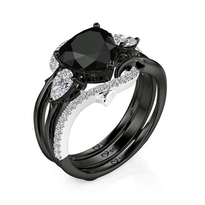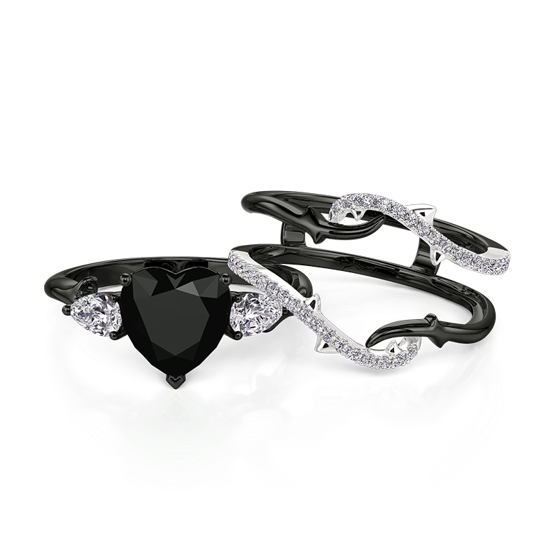 Jeulia Conjunto de Anéis Coração Negro Espinhos Três Pedras