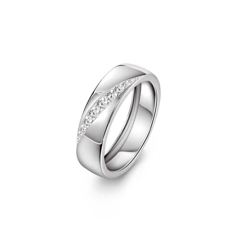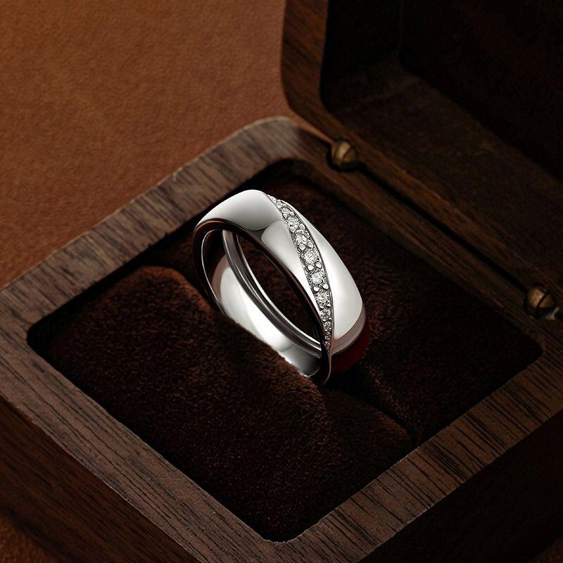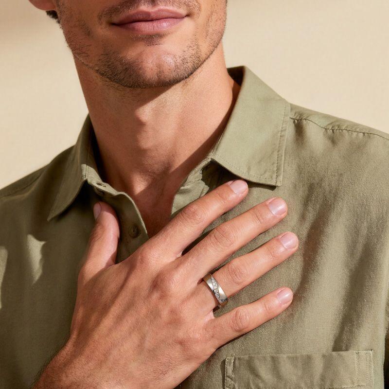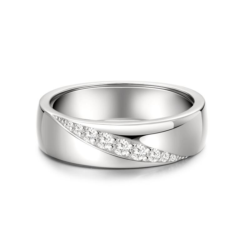 Jeulia Aliança de Casamento Masculina Diagonal Clássica Moissanita em Prata de Lei