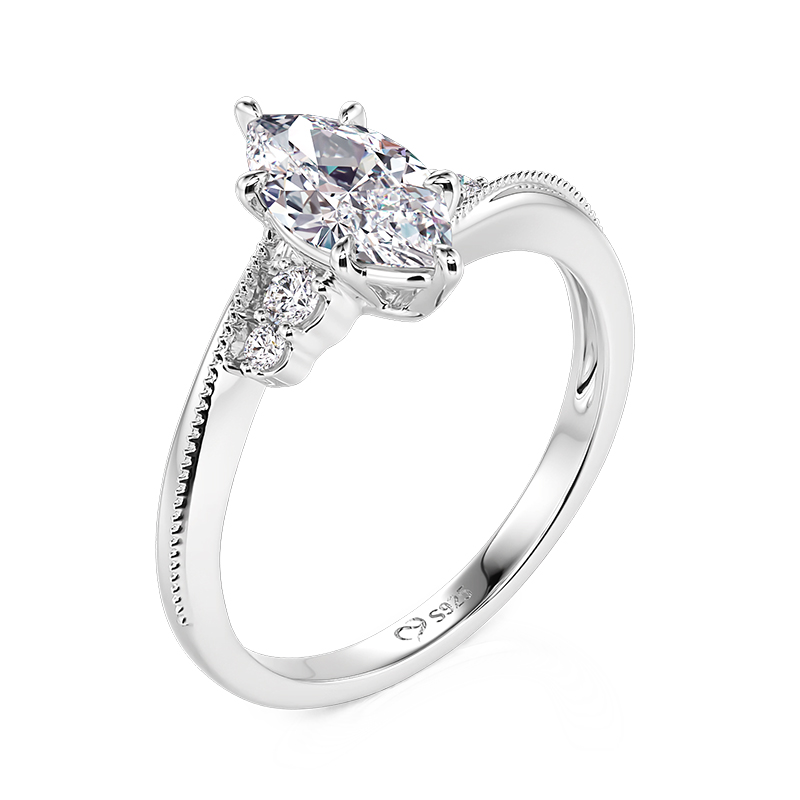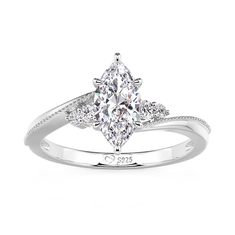 Este anel de noivado clássico e personalizado com corte Marquise da Jeulia reinterpretará a elegância das pedras com corte Marquise com um design inovador de contas trançadas. As garras de contas metálicas são dispostas em um padrão circular como gotas de orvalho, sustentando firmemente a pedra preciosa enquanto maximizam sua chama esguila e única. A haste do anel de noivado incorpora técnicas de torção e de alojamento em bezel, com fios de prata duplos trançados para criar uma textura tridimensional dinâmica, formando um belo contraste com os contornos lineares da pedra central. A pedra central pode ser personalizada como pedra natal ou pedra comemorativa, desde o granato de janeiro até o tanzanite de dezembro, com cada cor florescente com seu próprio charme único dentro do alojamento em bezel.