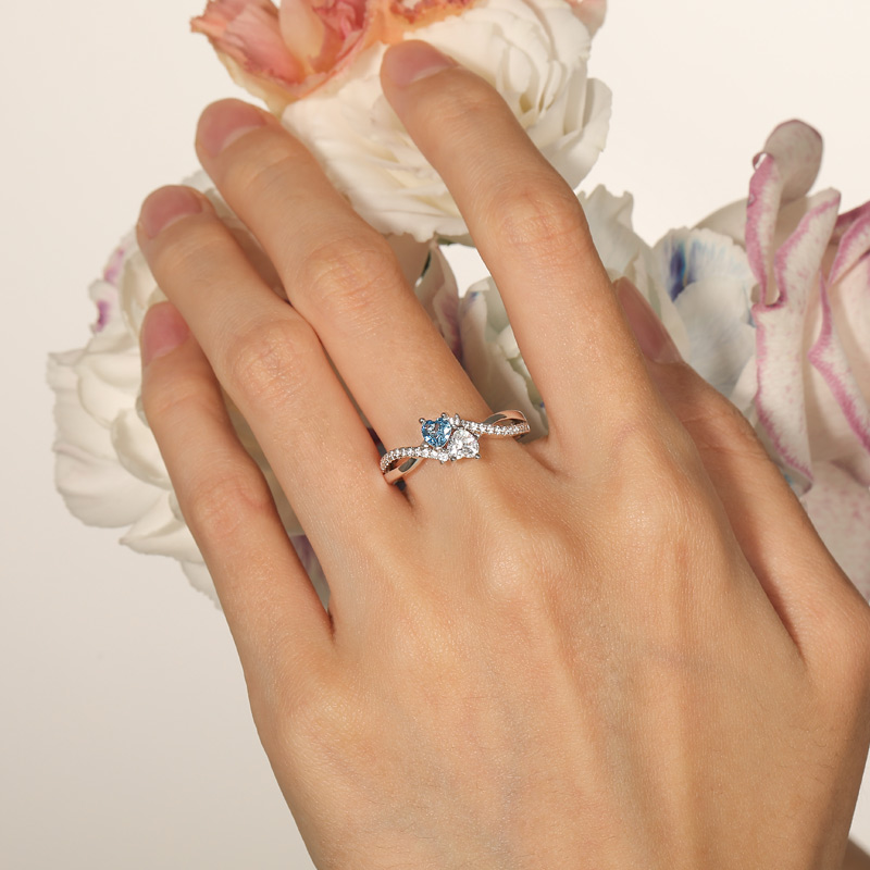 Jeulia Anel Duplo Coração Torcido Personalizado Prata Sterling