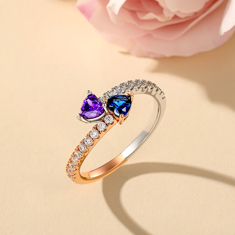 Jeulia Anel de Promessa Coração Bicolor Personalizado com Pedra de Nascimento