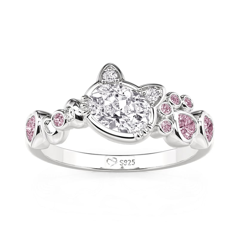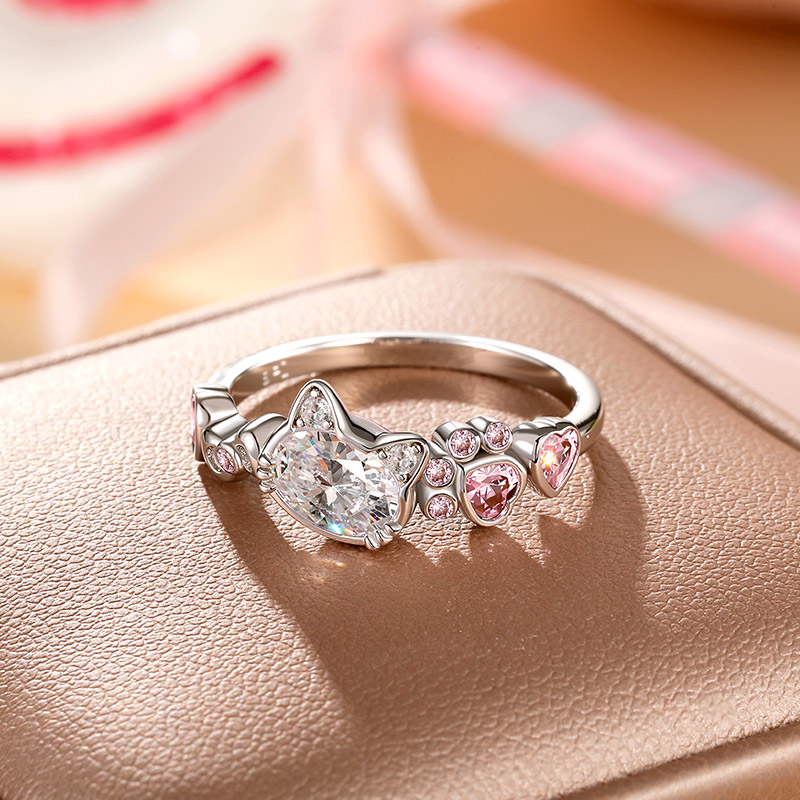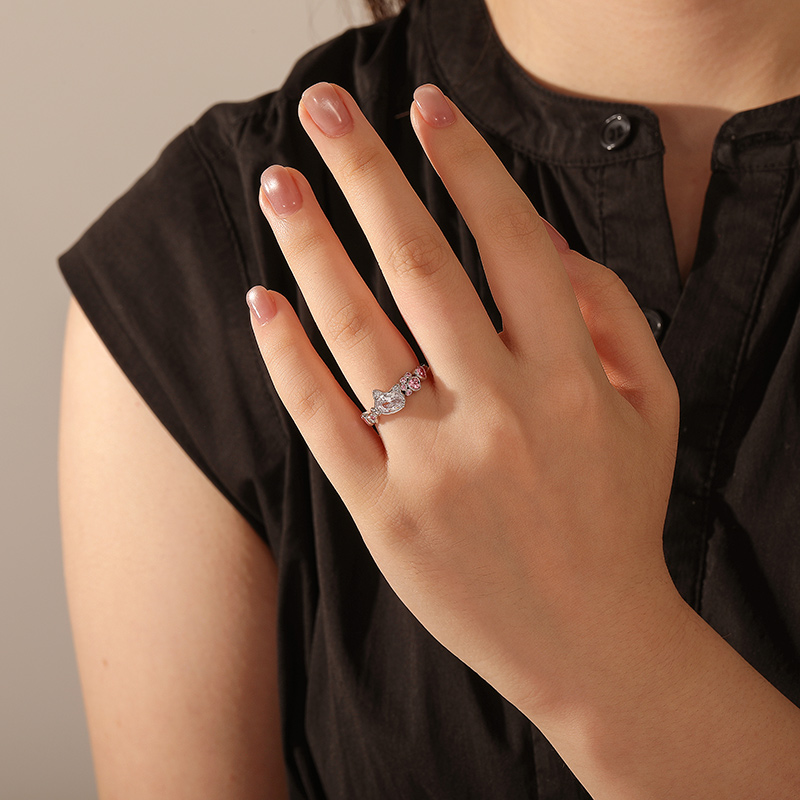 Jeulia Anel de Gato da Moda com Laço e Pedras Rosas