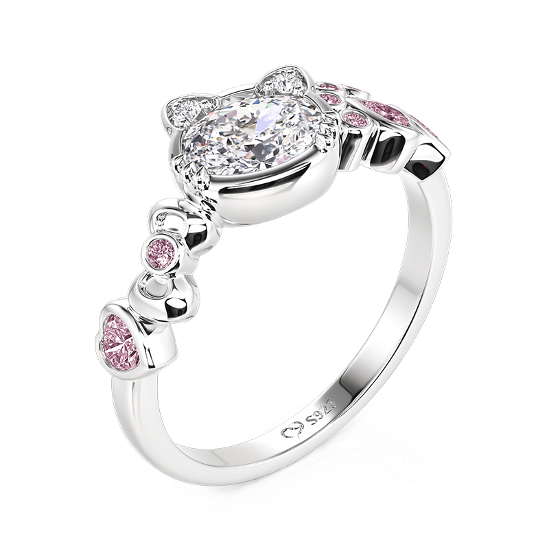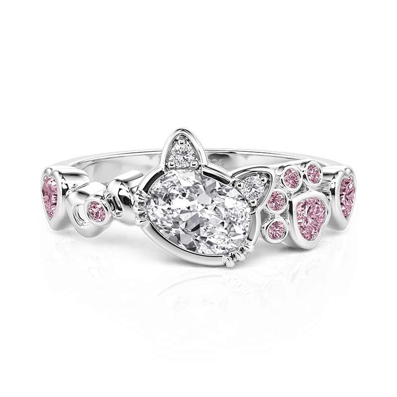 Um zircão de cristal em forma de gato brincalhão salta ao lado de um laço com corações rosas e gemas redondas, sua cauda enrolando-se em uma banda (anel) cintilante. O design equilibra fantasia e elegância, com sutis acentos pavé traçando as curvas como luz das estrelas em uma noite travessa. Este anel Jeulia Fashion Cat Ring with Bow Knot and Pink Stones é ideal para os jovens de coração e para aqueles que acreditam que a magia vive em momentos do cotidiano.
