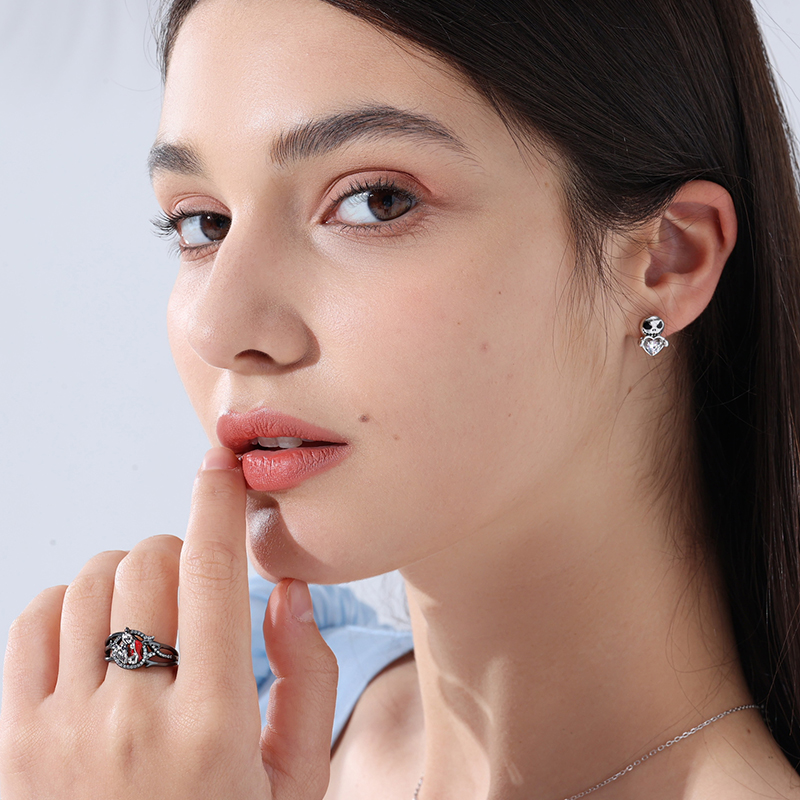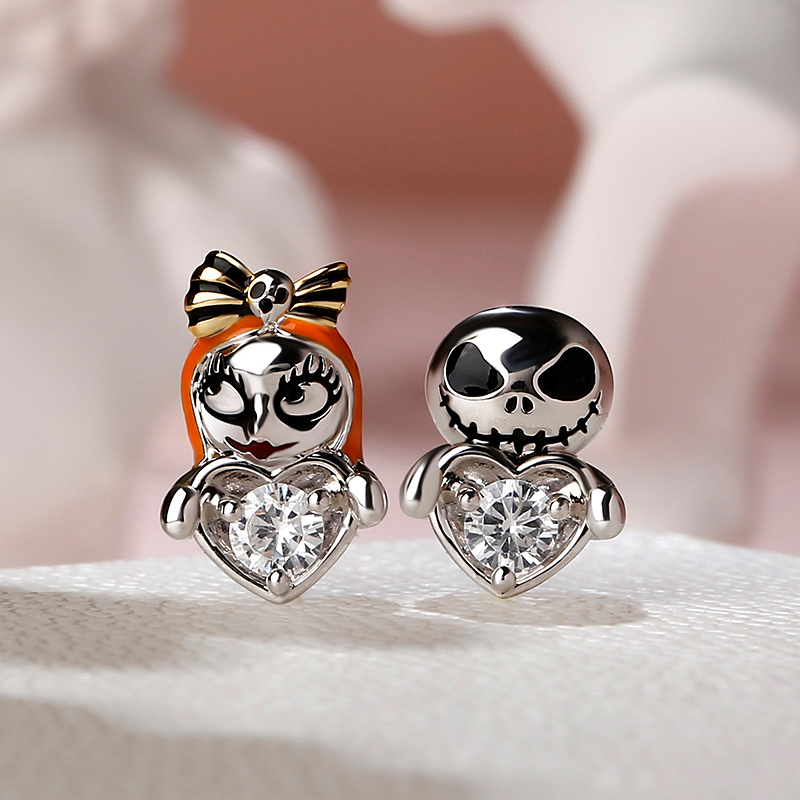 Jeulia Brincos de casal de prata com corte redondo de caveira