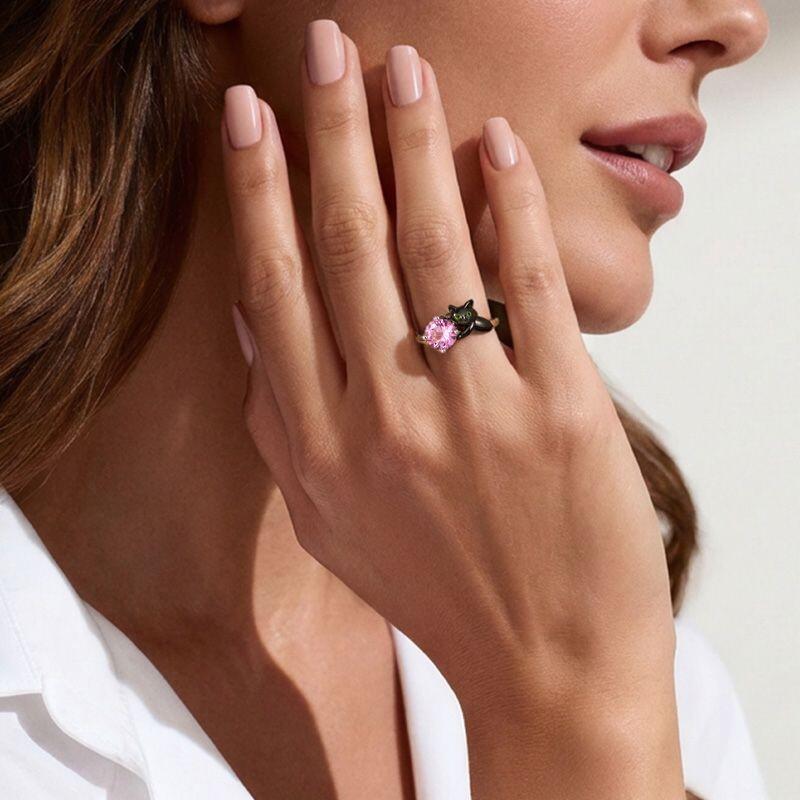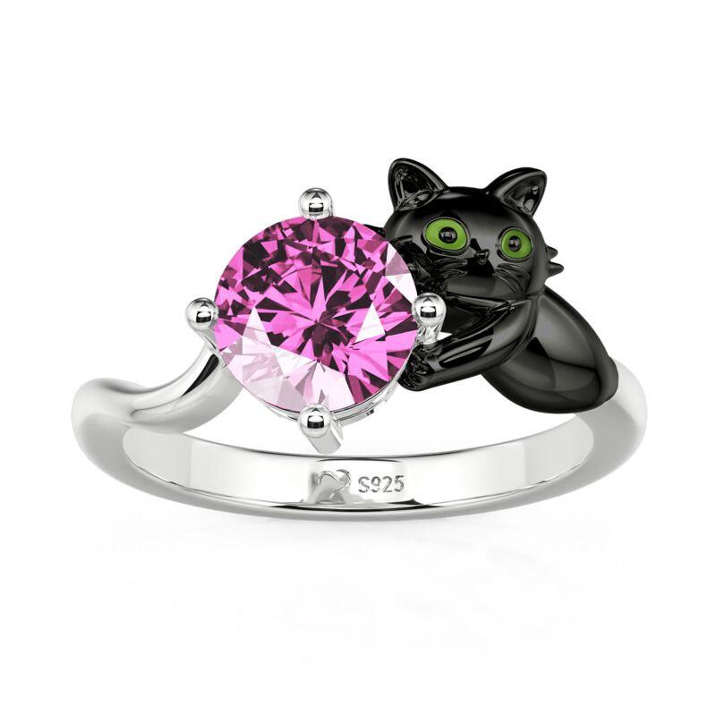 Jeulia Hug Me Anel Gato Preto com Pedra Roxa Corte Redondo