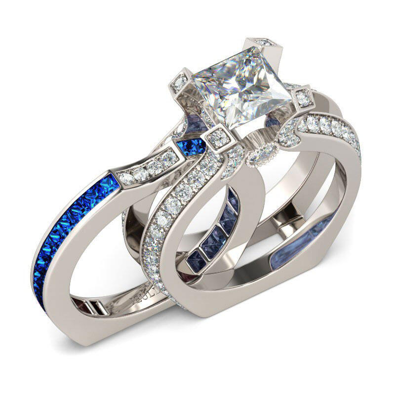 Jeulia Conjunto de anéis intercambiáveis de prata esterlina corte princesa bonito