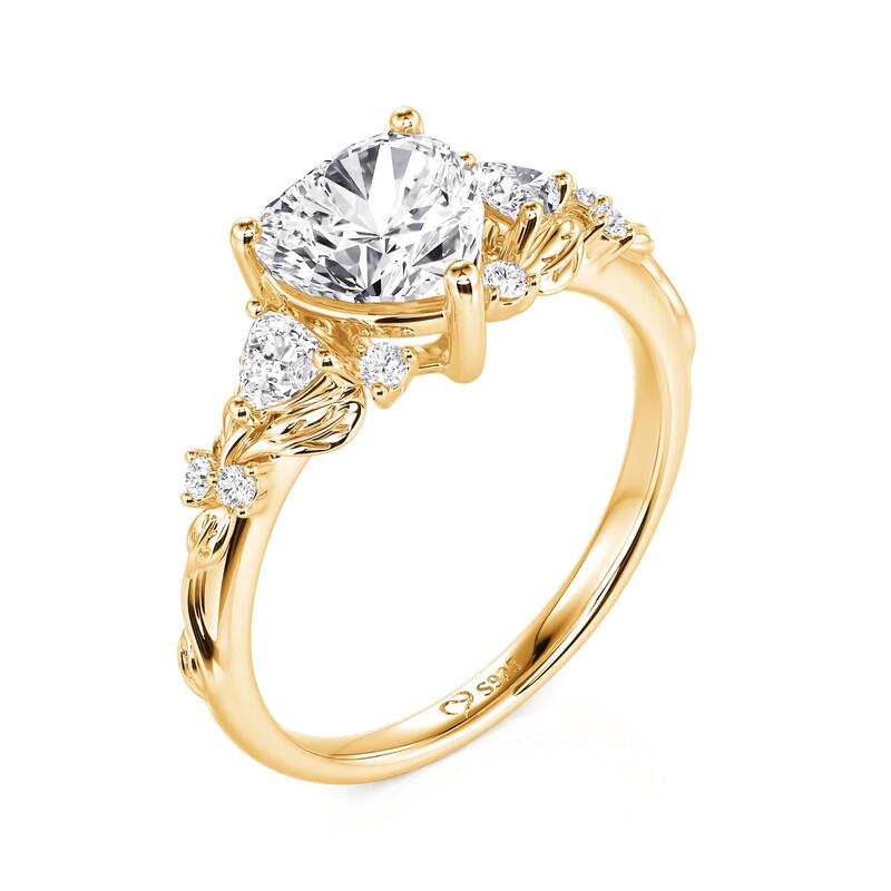 O Anel de Noivado Três Pedras Folha Jeulia é um símbolo encantador de amor e comprometimento, lindamente confeccionado em prata sterling com um acabamento dourado luxuoso. Este anel de ouro apresenta uma pedra central em forma de coração deslumbrante, ladeada por duas companheiras cintilantes, criando um design cativante de três pedras. Os intrincados motivos de folha na banda adicionam um toque de elegância inspirada na natureza, aprimorando a estética geral. Cada pedra é meticulosamente engastada para maximizar o brilho, permitindo que o anel brilhe a cada movimento. Perfeito para noivados ou ocasiões especiais, o Anel de Noivado Folha Três Pedras Jeulia é uma escolha atemporal que celebra sua história de amor única. Este anel folha combina beleza clássica com um toque moderno, tornando-o uma peça estimada para os próximos anos.