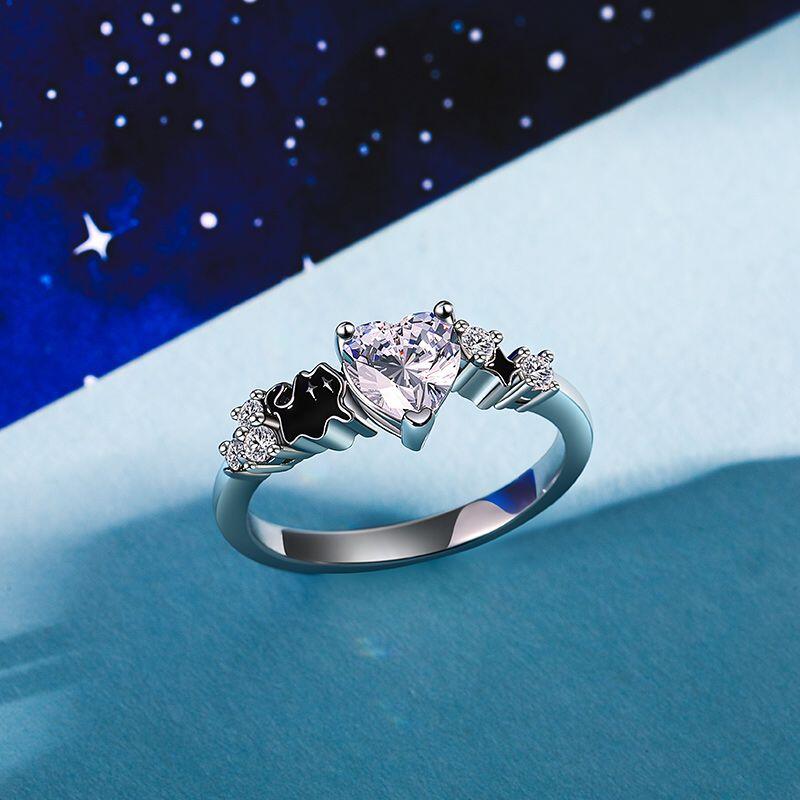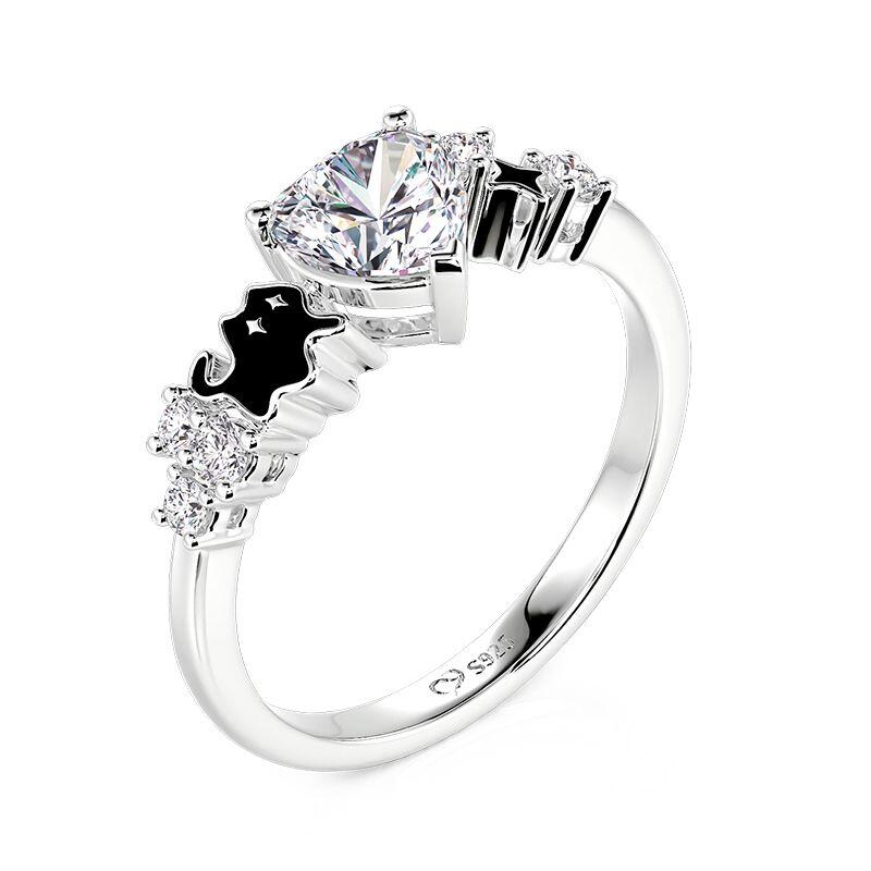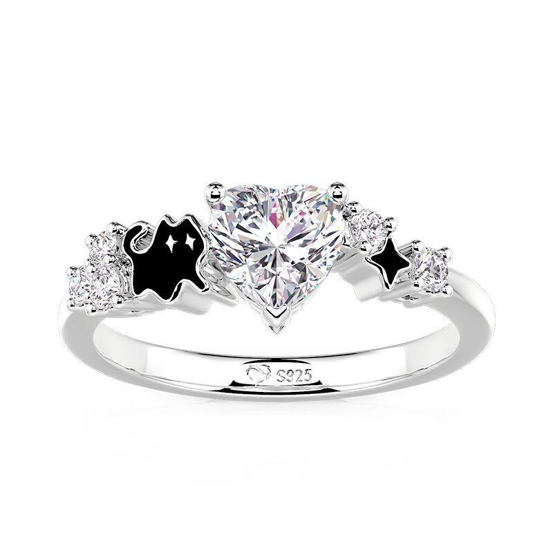 Jeulia Petland Anel Coração com Destaque Gato Adorável Prata de Lei