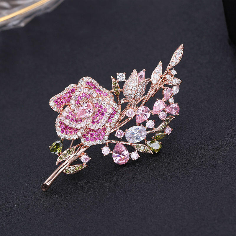 Jeulia Broche de Cobre com Design de Flor de Rosa e Folha