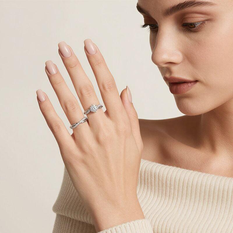 Jeulia Conjunto de Anel de Noivado Twist Star Corte Redondo é uma representação impressionante do amor e compromisso. Este conjunto de anéis minimalista apresenta uma pedra central de corte redondo lindamente trabalhada, simbolizando o amor eterno, enquanto o design torcido adiciona um toque moderno e elegante. As pedras menores incrustadas de forma intrincada ao longo da banda criam um brilho cativante, garantindo que este anel capture a luz de todos os ângulos. Feito de materiais de alta qualidade, este conjunto de anéis não é apenas uma peça de destaque, mas também construído para durar. Este conjunto de anéis de noivado simples é perfeito para aqueles que desejam celebrar sua história de amor única com um anel que é ao mesmo tempo sofisticado e significativo, tornando-o uma escolha ideal para o momento especial da eternidade.