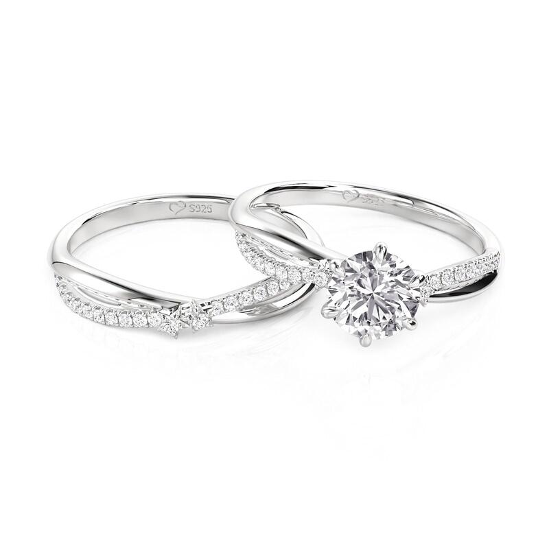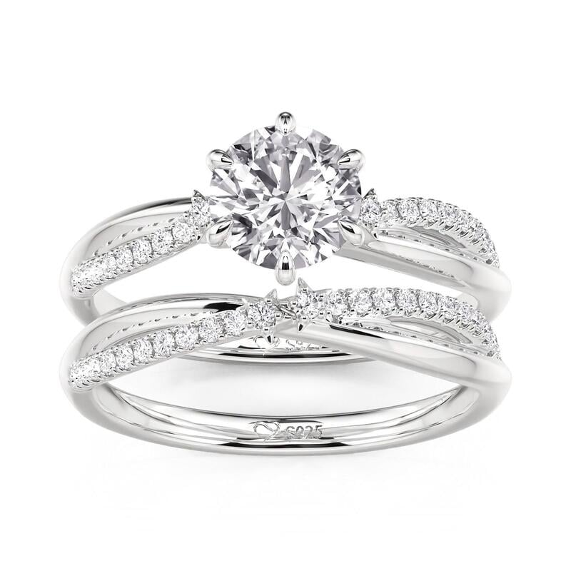 Jeulia Conjunto anel noivado estrela torcida corte redondo