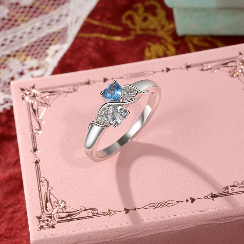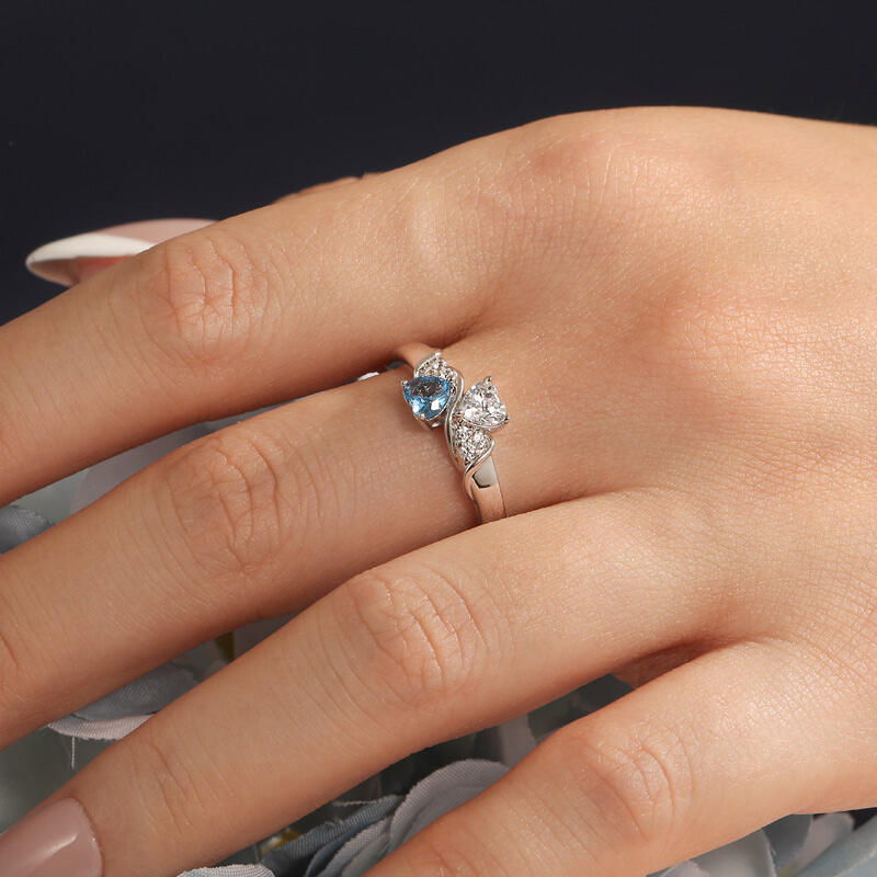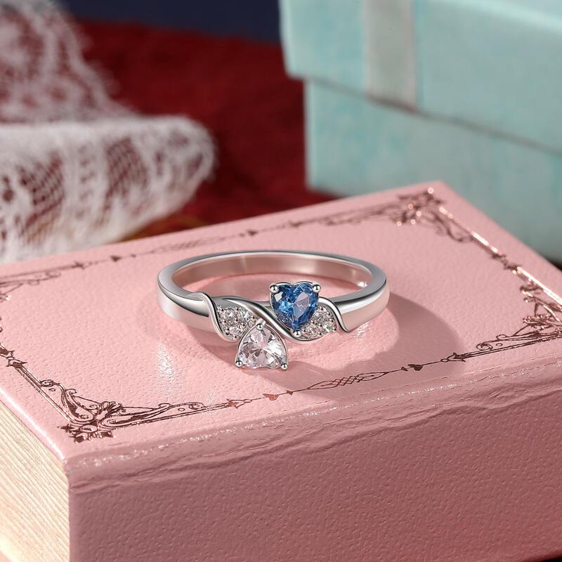 Jeulia Anel de Promessa Dois Corações Personalizado com Linhas Onduladas